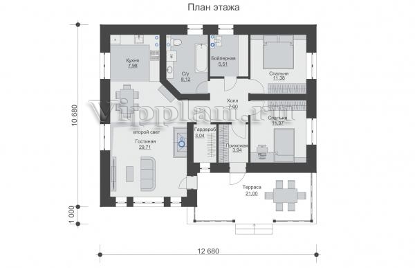 | Размеры дома: | 11.68м×12.68м |